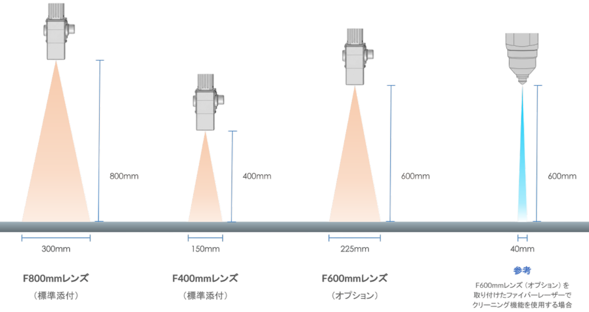 フォーカス焦点距離 | F 800mm(300mm幅) F 400mm(150mm幅) F 600mm(225mm幅)(オプション) |